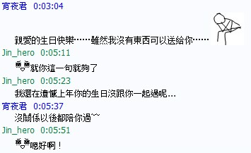 中午上課時收到樂仔跟其他朋友的生日短信,噗。